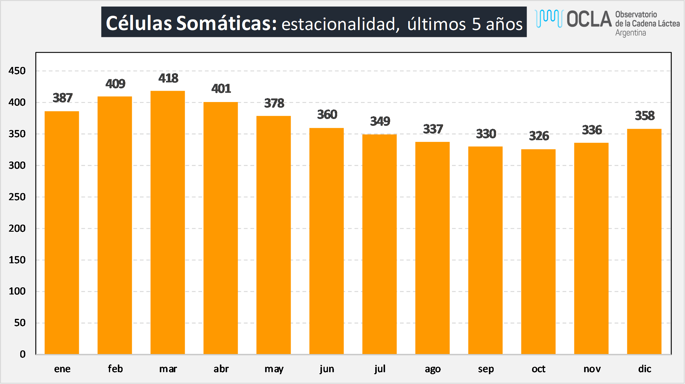 Recuento de Células Somáticas: estacionalidad, últimos 5 años