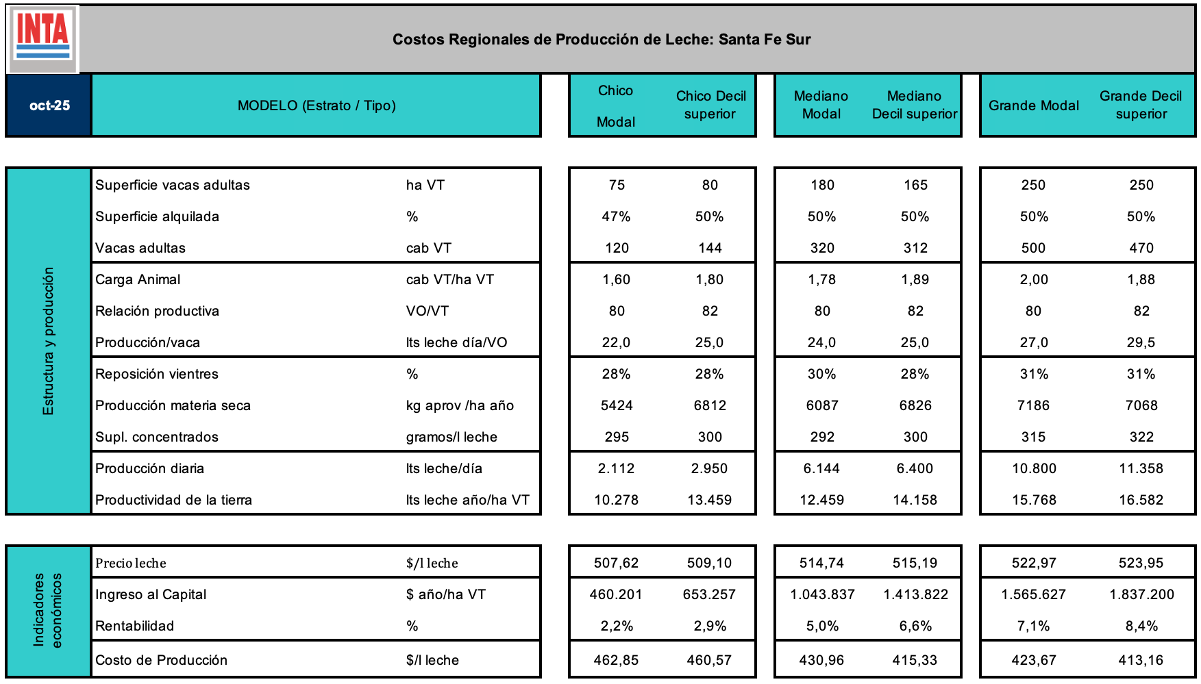 Costos Regionales de Producción - Cuenca Santa Fe Sur