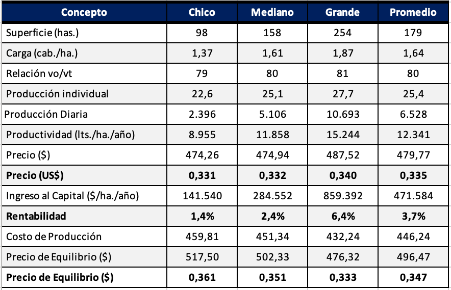 Rentabilidad del Tambo Promedio