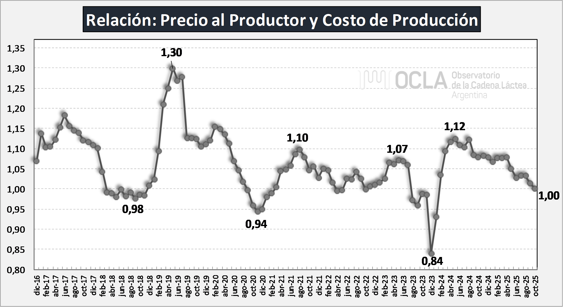 Relación Indice de Precio al Productor e Indice de Costos de Producción de Leche