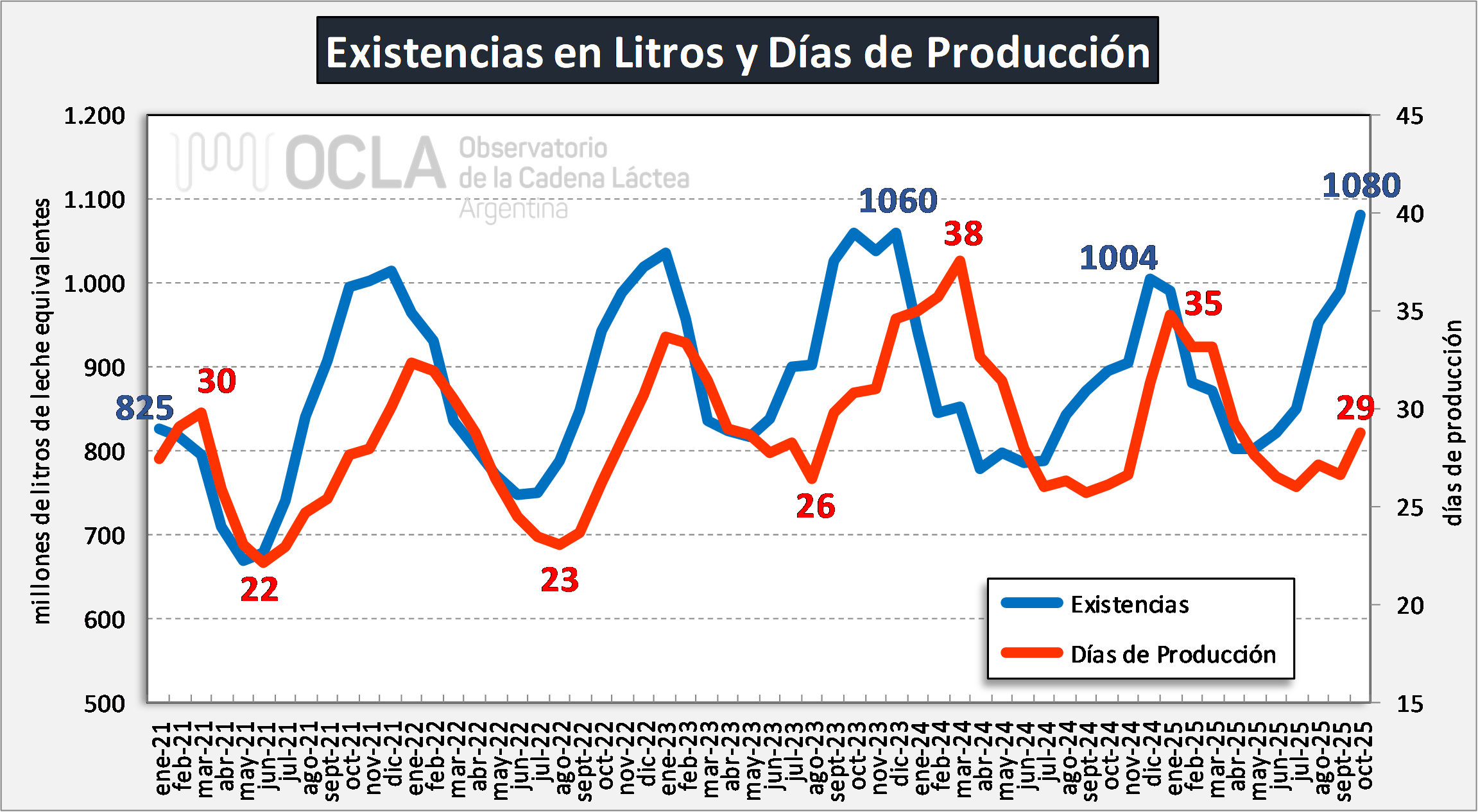 Existencias: Estacionalidad en días de producción, últimos 5 años