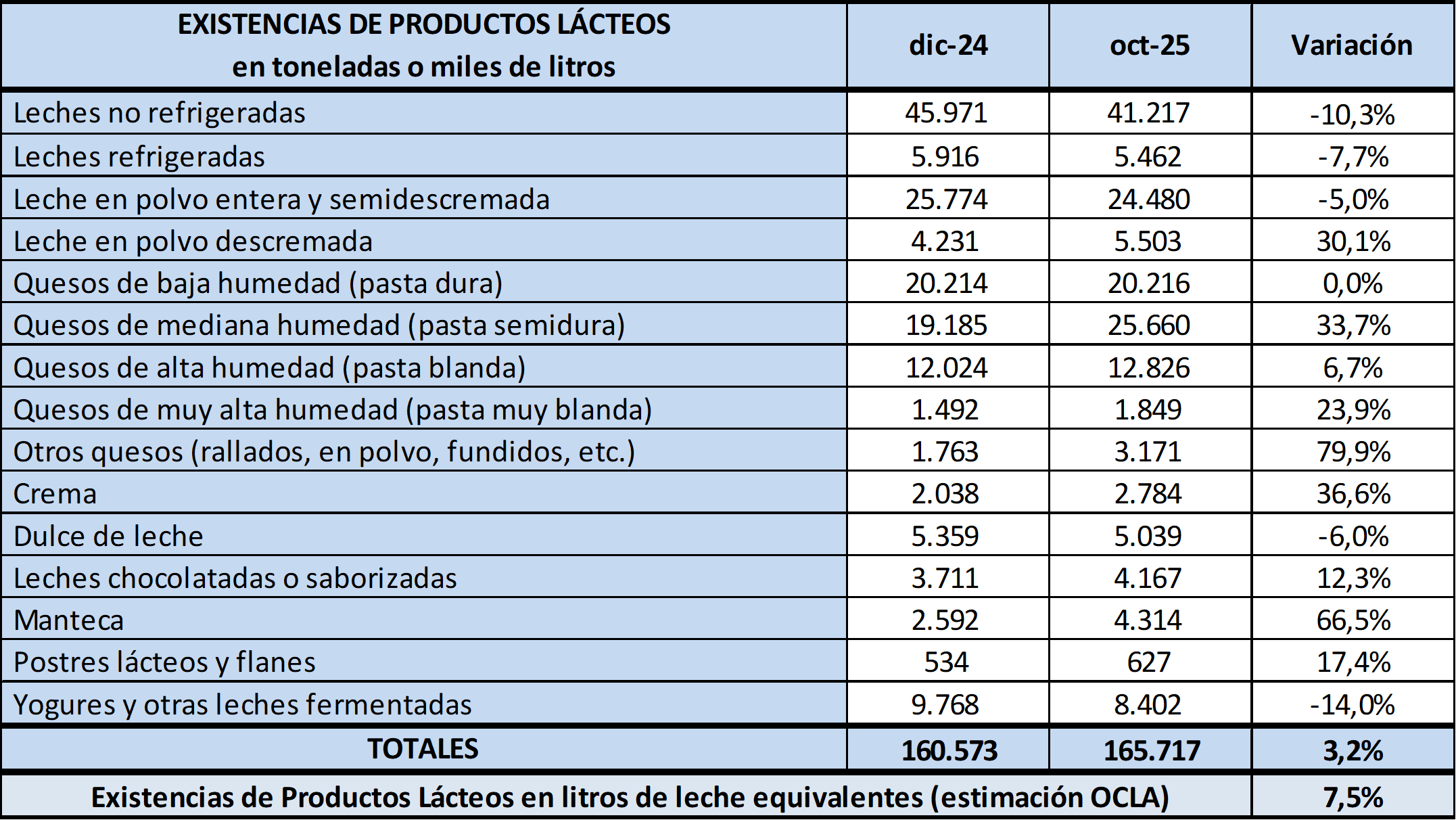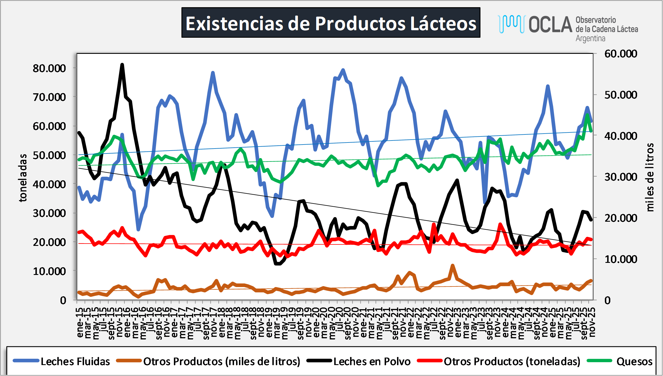 Existencias de Productos Seleccionados - último mes - litros equivalentes