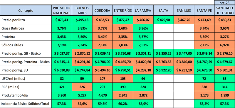 Precios de los lácteos al mes de octubre de 2025 12/11/2025