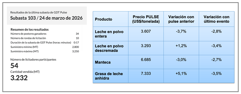 El Valor por Litro de Leche Equivalente de las importaciones de China en el acumulado de 2026 fue de US$ 1,07 (subiendo un 17,6%), cuando el Valor por Litro Equivalente de las exportaciones totales de Argentina a todos los destinos para igual período, fue de US$ 0,53/litro.