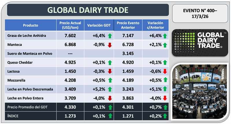 Evento N° 400 del Global Dairy Trade 17/3/2026
