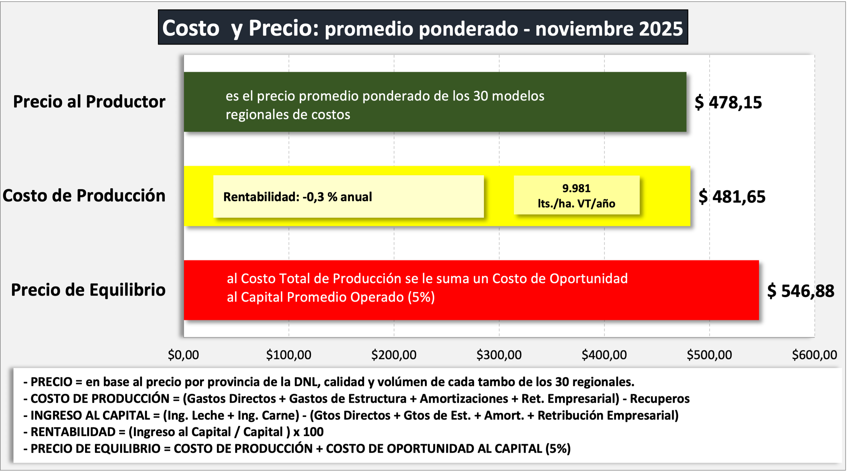 INGRESO AL CAPITAL = (Ingreso Venta de Leche + Ingreso por Carne) – (Gastos Directos + Gastos de Estructura + Amortizaciones + Retribución Empresarial)