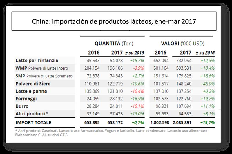 China confirma la tendencia de las importaciones de productos de alto valor agregado, mientras que se da una disminución de las importaciones de productos semielaborados tales como leche en polvo.