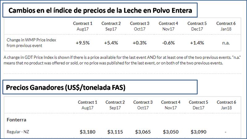Resultados del Evento N° 191 del Global Dairy Trade (GDT) 4/7/2017
