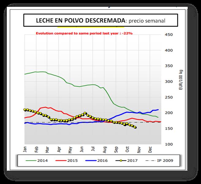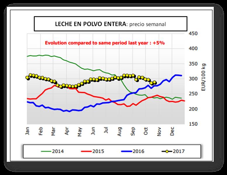 Unión Europea; precios de los principales commodities lácteos 6/11/2017![]() ![]() ![]() extraído por OCLA de Milk Market Observatory