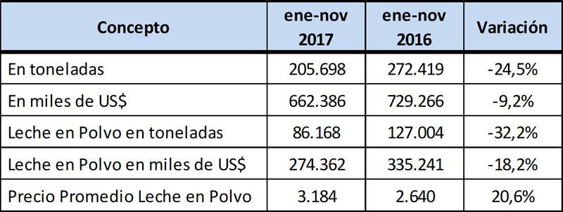 Exportaciones Lácteas de Argentina: a noviembre de 2017 28/12/2017