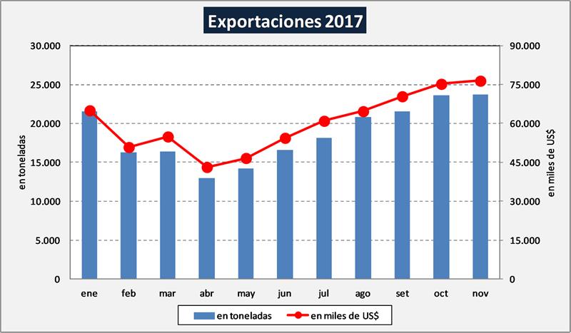 EVOLUCIÓN MENSUAL DE LAS EXPORTACIONES 2017