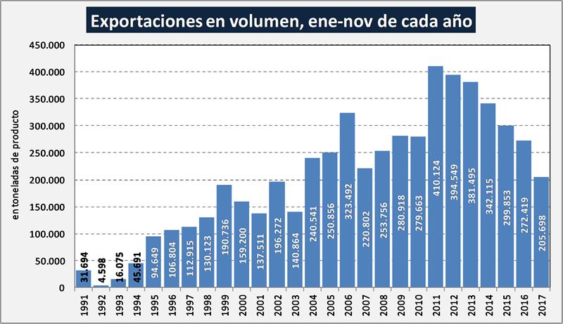 EVOLUCIÓN DE LAS EXPORTACIONES 2016-2017