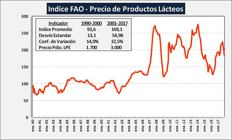 El Índice de precios de los productos lácteos se calcula sobre la base de los precios de la manteca, la leche descremada en polvo, la leche entera en polvo y el queso. La media se pondera por las cuotas medias de exportación de los últimos años.