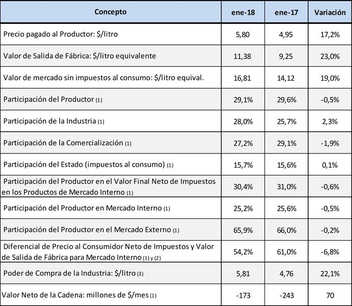 - El valor por litro equivalente (VLE) del total del sistema llegó en enero a $ 19,93, cuando el valor máximo se dio en julio de 2017 con $ 20,16.