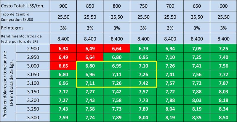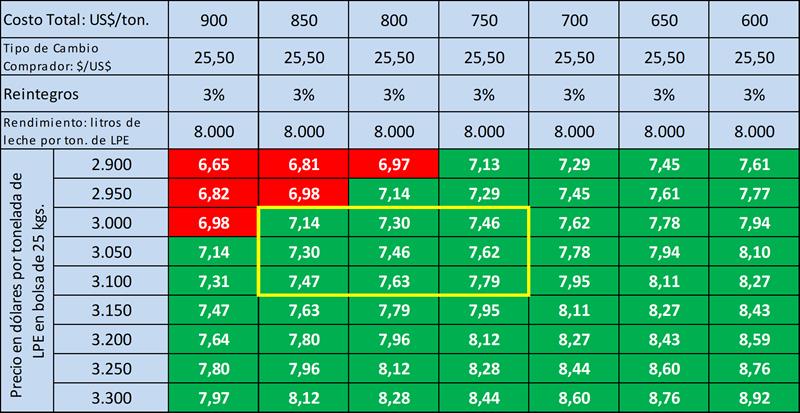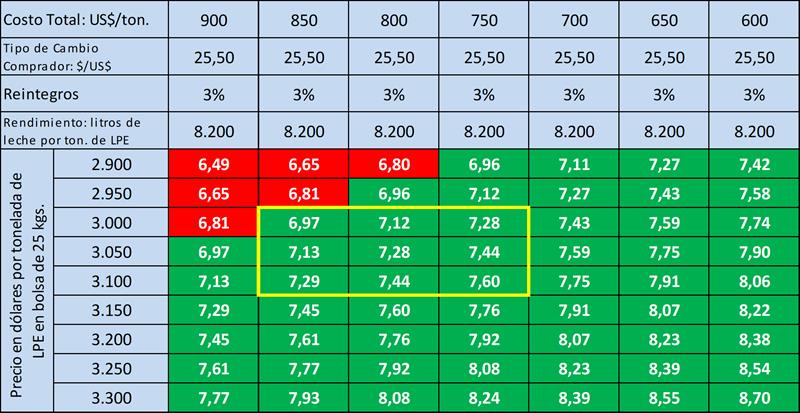 SIMULADOR: 8.000 litros de leche / tonelada de LPE
