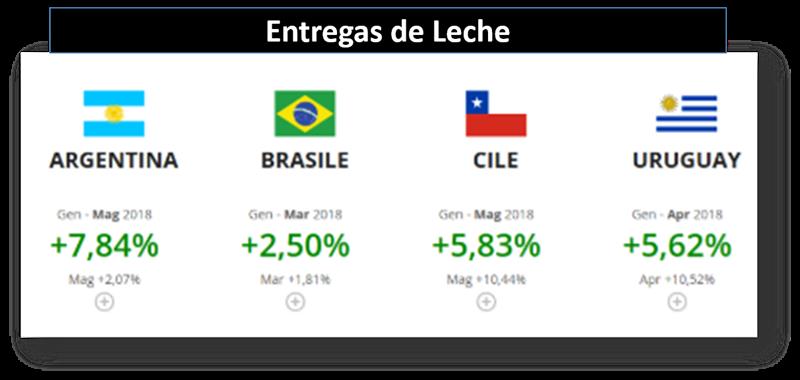 La producción de leche sigue siendo sostenida y está mejorando constantemente en Sudamérica, gracias principalmente a las condiciones climáticas favorables. Los precios de la leche en tranquera siguen siendo relativamente altos. Sin embargo, en la mayoría de los casos, los costos para los agricultores son relativamente altos debido a los efectos adversos de la sequía en los cultivos de cereales durante el primer trimestre de 2018.