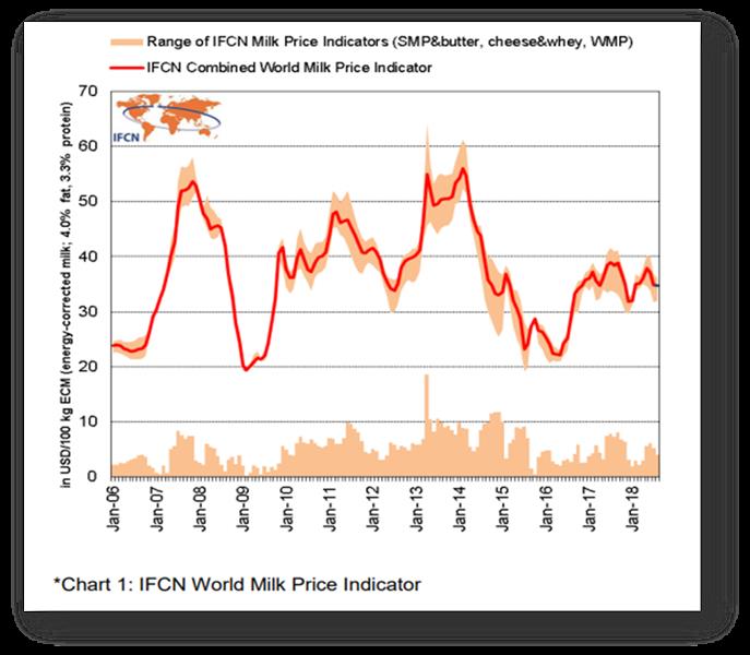 IFCN presentó en su conferencia anual los datos y las perspectivas para el futuro de los mercados de productos lácteos y la evolución del precio de la leche. Después de la última crisis mundial del 2016, los precios de la leche de la granja se han estabilizado durante los últimos dos años en un nivel de 35 centavos de US$/kg ECM *. IFCN predice una mayor estabilización del precio de la leche ya que la demanda de leche está creciendo más rápido que la producción.