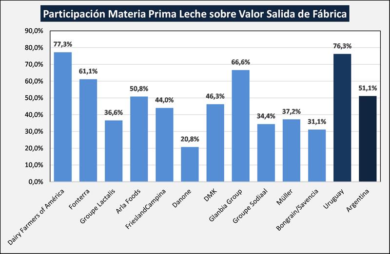 Sobre la base del reciente trabajo publicado por la International Farm Comparison Network - IFCN del ranking de los 20 principales procesadores mundiales de leche en lo que respecta a facturación en dólares por kg. de leche y combinando el mismo con la publicación mensual de LTO Nederlands – ZuivelNL del precio promedio de los últimos 12 meses de las principales industrias lácteas, hemos elaborado esta comparación, incluyendo a Uruguay y la Argentina: