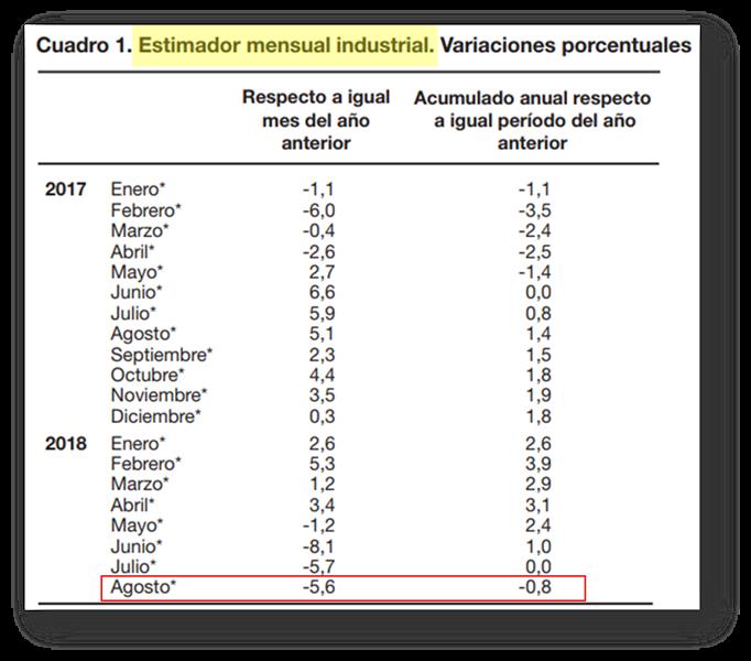 Estimador Mensual Industrial – agosto 2018