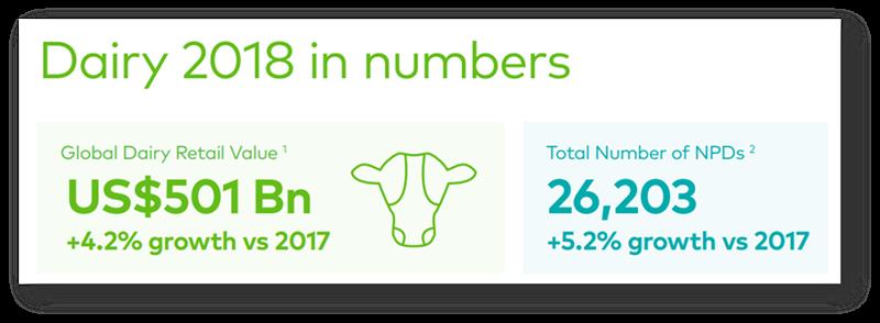 Valor de venta global de lácteos: US$ 501 billones, + 4,2% de crecimiento vs 2017.