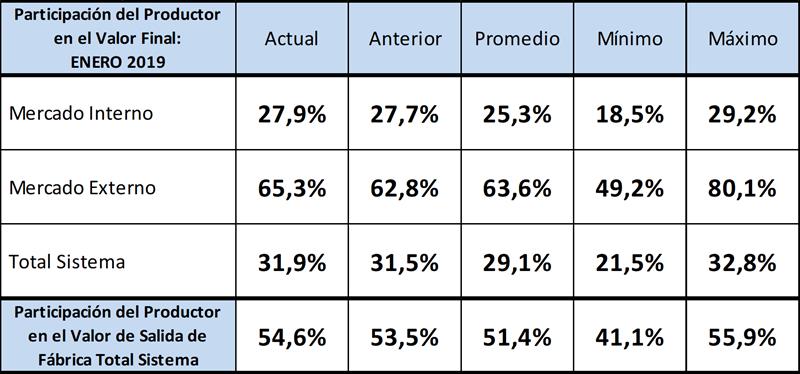 Puede concluirse que existe una mejora en la participación del sector primario, que seguramente se irá incrementando hacia el mes de abril (pico tradicional de mínima producción), por cuestiones de menor oferta de leche cruda, una participación de la industria hacia la baja (con un incremento en el deterioro de los resultados) y menor margen comercial. Los precios en salida de fábrica, a pesar de lo oneroso que pueden resultar para el consumidor, presentaban un importante retraso en moneda constante y se encuentran en valores en dólares muy bajos respecto a su situación de períodos anteriores (al igual que la materia prima leche), lo cual nos hace suponer una convergencia hacia mediados del año, de no mediar otras circunstancias.