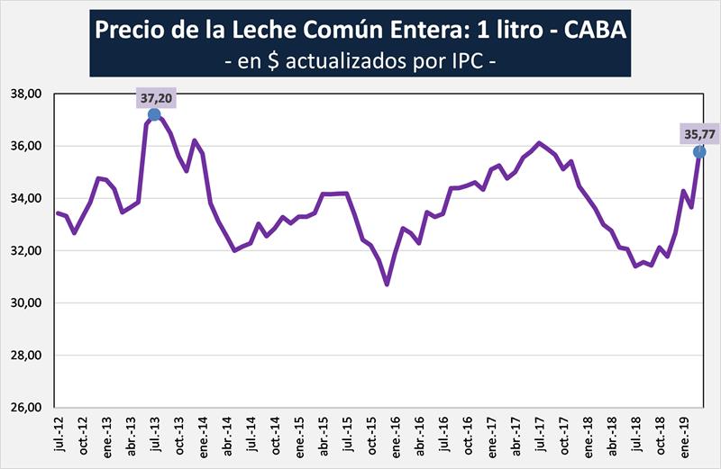 El mes de marzo está estimado: 1) Precio de la Leche Común Entera + 10% respecto al mes anterior, 2) IPC marzo 2019 = 3,5% y 3) Dólar promedio del mes hasta el día 22/03 = $ 40,79.