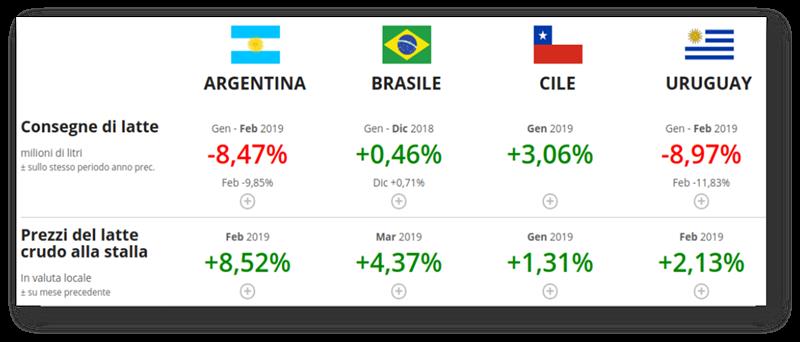 En Argentina y Uruguay la producción de leche es menor que el año pasado. Como resultado, algunas empresas de procesamiento están produciendo exclusivamente para satisfacer la demanda local, y no con fines de exportación.