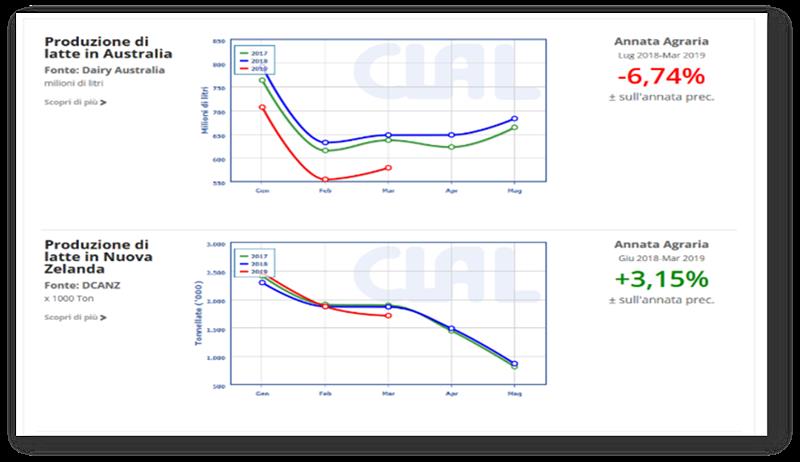 La producción de leche en Australia, en el mes de marzo de 2019, disminuyó un 10,6% en comparación con marzo de 2018, y la tendencia de los primeros 9 meses de la temporada 2018-19 registra un -6,7%. Para los próximos meses, no se espera una mejora en los márgenes del productor, y esto tendría un impacto negativo en la primera fase de la temporada futura.