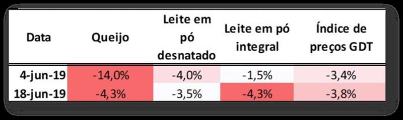 Tabla 1. Variación de los principales derivados negociados en las subastas GDT; elaborado por el equipo MilkPoint Mercado con datos de Global Dairy Trade.
