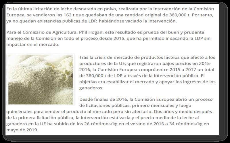 UNION EUROPEA: ya está vacía la intervención de la Leche en Polvo Descremada