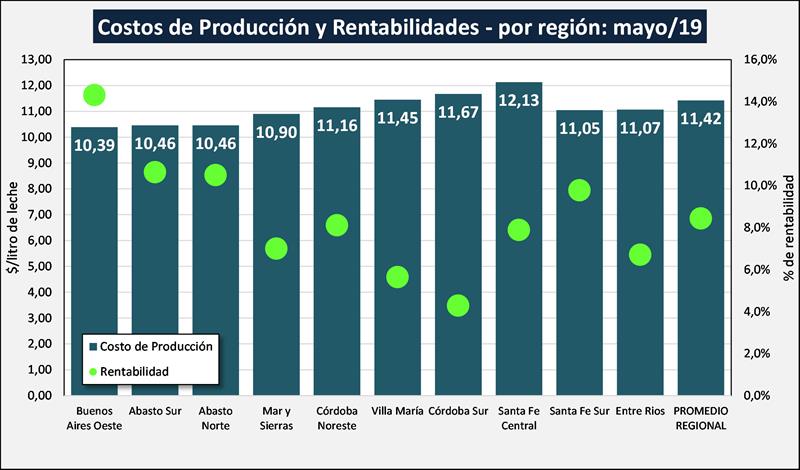 Costos Regionales de Producción de Leche, valores actualizados a MAYO de 2019 25/6/2019