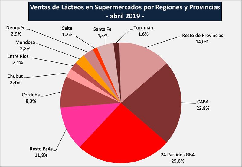 Considerando una venta en el mercado doméstico de 582 millones de litros de leche equivalentes para abril de 2019 y en función al Valor por Litro Equivalente de IAPUCO para el Mercado Interno de $ 44,92/litro, la facturación total del mercado interno fue de $ 26.143 millones con lo que la venta de supermercados de $ 5.732 millones, representan el 22% de las ventas totales en el mercado interno.