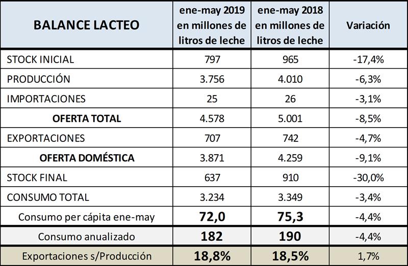 BALANCE LÁCTEO: enero-mayo de 2019 23/7/2019
