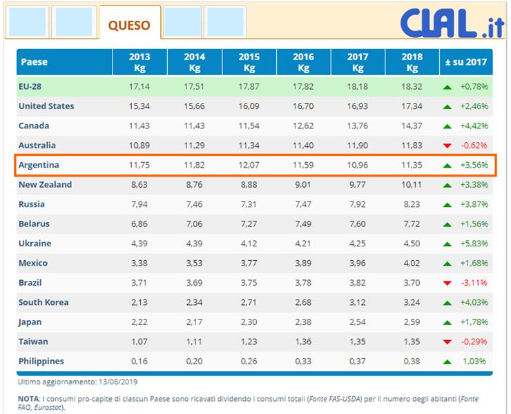 Consumo de leches fluidas y quesos a nivel per cápita mundial 3/9/2019
