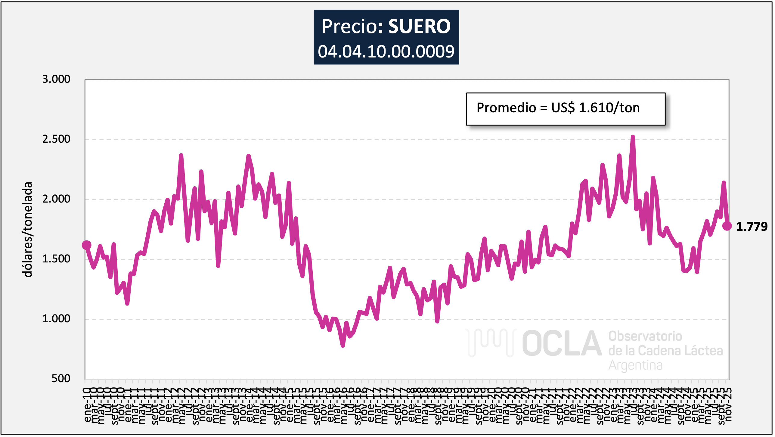 Precios promedios de exportaciones argentinas de Suero (Posición: 0404.10.00.000P)