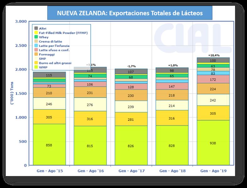 La producción de leche en Australia en agosto de 2019 disminuyó un 5,9% en comparación con agosto de 2018. Las leyes de sequía y extracción de agua tienen un impacto negativo en la producción y las expectativas.
