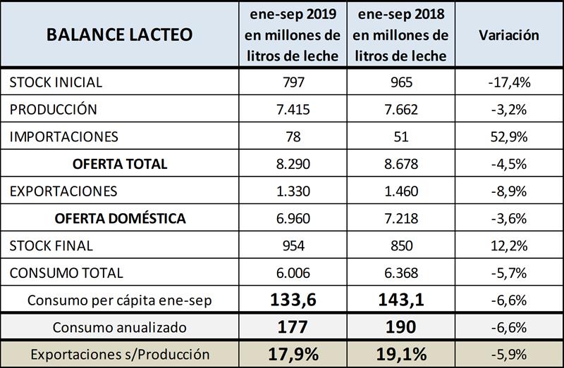 Ventas, Balance Lácteo y Consumo per cápita 20/11/2019