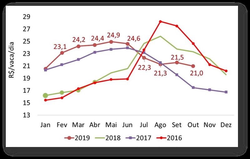 BRASIL: crece sólo el 0,6% la producción en el tercer trimestre 16/12/2019IBGE: caída en el precio pagado al productor, el aprovisionamiento en el tercer trimestre crece solo un 0,6% en comparación con 2018. Analizando el acumulado de enero a septiembre, la captación fue 3,4% mayor que el mismo período del año pasado. Vea la evolución de las variaciones anuales trimestrales en el gráfico 1. Gráfico 1. Financiación formal: variación en comparación con el mismo trimestre del año anterior. ![]() Fuente: Elaborado por MilkPoint Mercado basado en datos de IBGE. La desaceleración en el crecimiento se explica por la menor rentabilidad del productor lácteo, ya que el indicador RMCR (ingresos menos costo de alimentación) cayó en la segunda mitad del año. Con esto, el acumulado de junio a noviembre de 2019 es un 7% inferior al mismo período de 2018, como se muestra en el gráfico 2, lo que refleja la caída de los precios pagados a los productores, en gran parte debido al margen negativo de las industrias en la mayoría de sus derivados. . Gráfico 2. Evolución del indicador RMCR. ![]() Fuente: preparado por MilkPoint Mercado basado en datos de DERAL / SEAB / PR y Cepea. Más específicamente, considerando la variación de producción entre las principales cuencas lecheras en Brasil, el volumen de la captación formal en el tercer semestre de 2019 en la región del Medio Oeste disminuyó en un 1,9% en comparación con el tercer trimestre de 2018. Comparando los mismos períodos, Las regiones del sudeste presentaron un crecimiento del 1,2%, mientras que la región del sur se mantuvo estable. Por otro lado, el volumen en el noreste aumentó en un 9,2%, evitando una disminución más pronunciada de la financiación general brasileña. traducido por el OCLA del newsletter de MilkPoint con datos de IBGE por Marcela Morelli