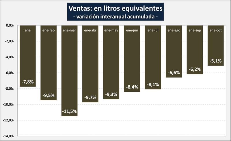 El consumo per cápita anualizado en base a los datos a octubre, arroja un valor de 179 litros por habitante y por año, lo que representa una disminución del 5,8% respecto al año anterior y se encuentra un valor como éste en la serie de 28 años , en el año 2003.