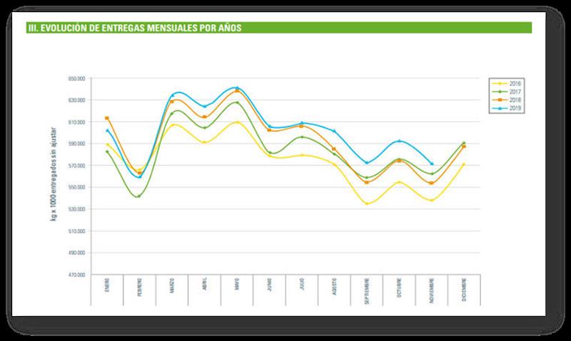 Como puede verse en el gráfico adjunto, las entregas de noviembre han alcanzado una cifra récord para dicho mes, y son bastante más altas que las de las campañas precedentes.