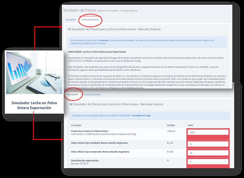 Estimados Suscriptores; hemos incorporado un Simulador de Precios para Leche en Polvo Entera de Mercado Externo de autogestión, donde ud. puede modificar algunos datos. Recomendamos leer las consideraciones y en breve incorporaremos un cálculo auxiliar para la determinación de recuperos que surgen luego de la estandarización, sobre todo para leches con altos niveles de sólidos.