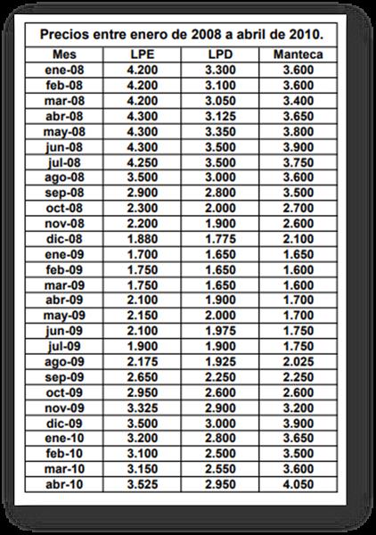 Precios de los Lácteos durante la Gripe A 2008-10 27/3/2020