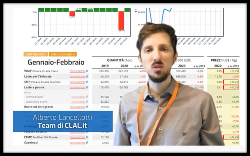 Aumenta significativamente el comercio de productos terminados. La manteca informa un aumento de aproximadamente + 70%, mientras que el queso supera el + 15%, en comparación con las cantidades importadas en el mismo período de 2019.