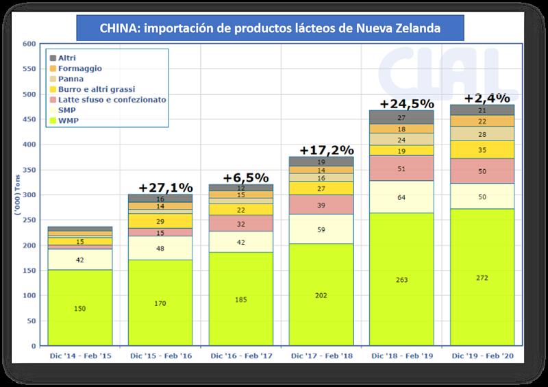 En Australia, se espera que la producción de leche sea de -4,9% esta temporada en comparación con la anterior, según estudios de algunos bancos. Se espera una alta demanda de leche, lo que podría soportar los precios. Los datos actuales sobre los registros de producción de leche de Australia + 8,1% en comparación con febrero de 2019 (+4,4% en el promedio diario).