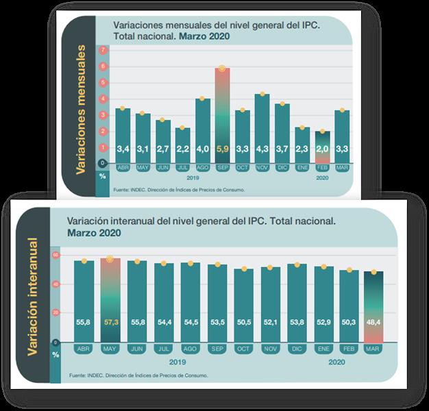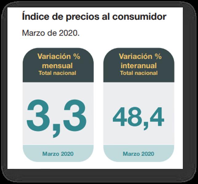 El nivel general del Índice de precios al consumidor (IPC) representativo del total de hogares del país registró en marzo una variación de 3,3% con relación al mes anterior y el acumulado anual fue del 48,4%.