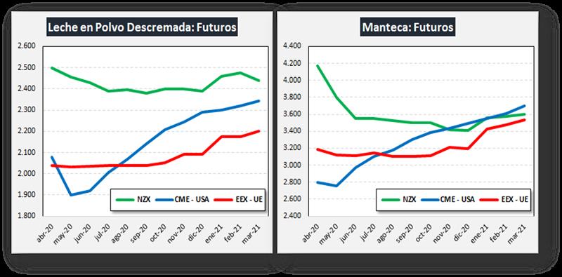 En virtud de la situación particular que se está viviendo producto de la pandemia de COVID-19 se están observando grandes diferencias en el comportamiento de los precios actuales y futuros de las commodities lácteas en estos tres actores de la lechería mundial.