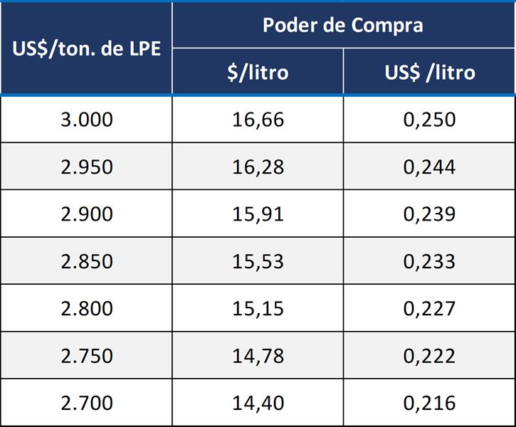 (*) el último caso refiere a una LPE de US$ 2.800/ton.