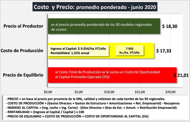 para el mes de junio del 2020 fue de $ 18,25/litro (SIGLeA) y $ 18,54/litro