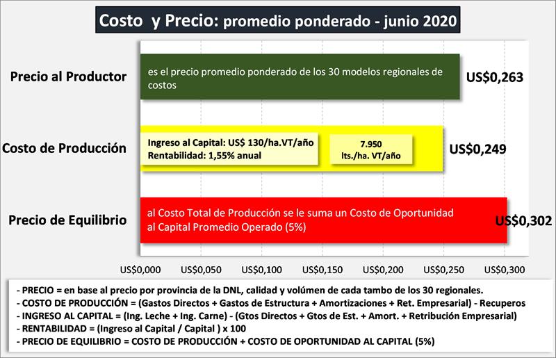 de US$ 0,267/litro, por su parte el Costo de Producción de US$ 0,249/litro y el