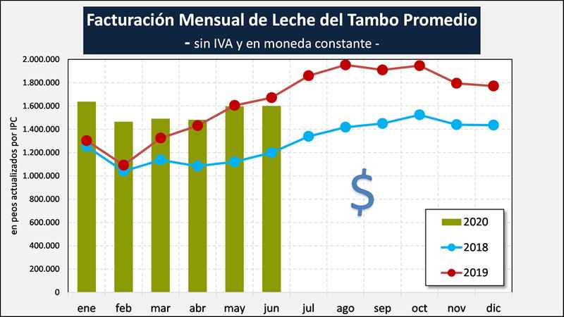 En el primer caso se toma la producción mensual del tambo medio que surge de SIGLeA-LUME se la multiplica por el precio promedio y se la actualiza con el IPC. En el segundo caso se utiliza el precio promedio en dólares.